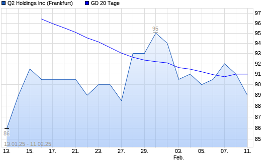 Mit dem Rücksetzer auf 91,00 EUR hat die Q2 Holding-Aktie am 10.02.2025 die 20-Tage-Linie nach unten gekreuzt.