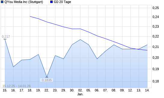 Mit dem Rücksetzer auf 0,18 EUR hat die QYOU MEDIA-Aktie am 13.01.2026 die 20-Tage-Linie nach unten gekreuzt.