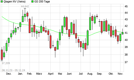 Mit dem Anstieg auf 39,98 EUR hat die Qiagen-Aktie am 04.11.2024 die 200-Tage-Linie nach oben gekreuzt.