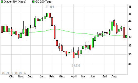 Mit dem Anstieg auf 40,45 EUR hat die Qiagen-Aktie am 05.09.2025 die 200-Tage-Linie nach oben gekreuzt.