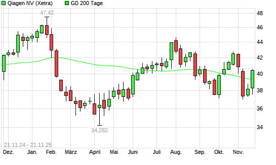 Mit dem Anstieg auf 39,68 EUR hat die Qiagen-Aktie am 20.11.2025 die 200-Tage-Linie nach oben gekreuzt.
