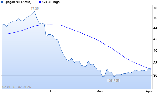 Mit dem Anstieg auf 37,48 EUR hat die Qiagen-Aktie am 01.04.2025 die 38-Tage-Linie nach oben gekreuzt.