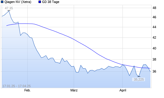 Mit dem Rücksetzer auf 36,47 EUR hat die Qiagen-Aktie am 16.04.2025 die 38-Tage-Linie nach unten gekreuzt.