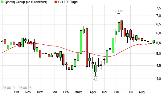 Mit dem Anstieg auf 5,51 EUR hat die Qinetiq Group-Aktie am 25.08.2025 die 100-Tage-Linie nach oben gekreuzt.