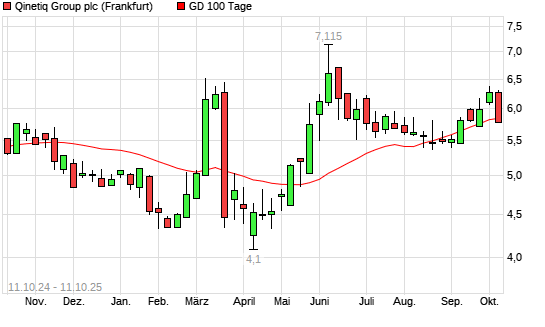 Mit dem Rücksetzer auf 5,77 EUR hat die Qinetiq Group-Aktie am 10.10.2025 die 100-Tage-Linie nach unten gekreuzt.