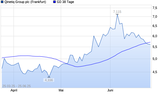 Mit dem Rücksetzer auf 5,63 EUR hat die Qinetiq Group-Aktie am 24.06.2025 die 38-Tage-Linie nach unten gekreuzt.
