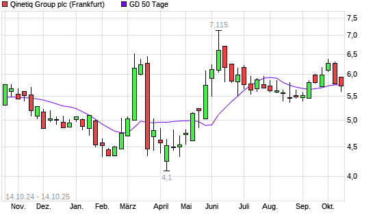 Mit dem Rücksetzer auf 5,75 EUR hat die Qinetiq Group-Aktie am 13.10.2025 die 50-Tage-Linie nach unten gekreuzt.