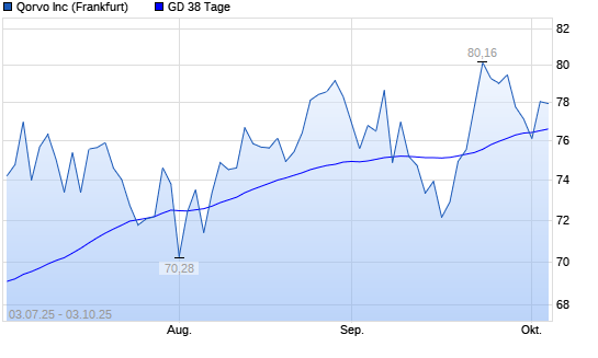 Mit dem Anstieg auf 78,06 EUR hat die Qorvo-Aktie am 02.10.2025 die 38-Tage-Linie nach oben gekreuzt.