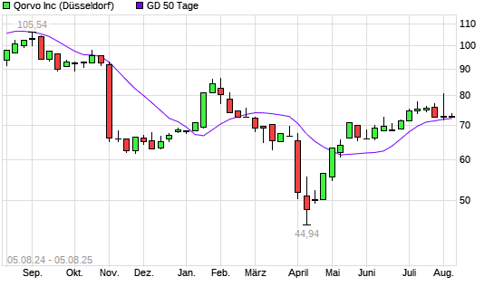 Mit dem Anstieg auf 72,43 EUR hat die Qorvo-Aktie am 04.08.2025 die 50-Tage-Linie nach oben gekreuzt.