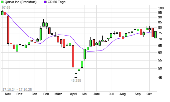 Mit dem Anstieg auf 76,76 EUR hat die Qorvo-Aktie am 16.10.2025 die 50-Tage-Linie nach oben gekreuzt.