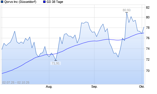 Mit dem Rücksetzer auf 76,12 EUR hat die Qorvo-Aktie am 01.10.2025 die 38-Tage-Linie nach unten gekreuzt.