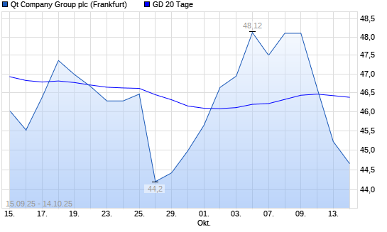 Mit dem Rücksetzer auf 45,22 EUR hat die Qt Group Ord Shs-Aktie am 13.10.2025 die 20-Tage-Linie nach unten gekreuzt.