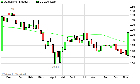 Mit dem Anstieg auf 126,70 EUR hat die Qualys-Aktie am 06.11.2025 die 200-Tage-Linie nach oben gekreuzt.