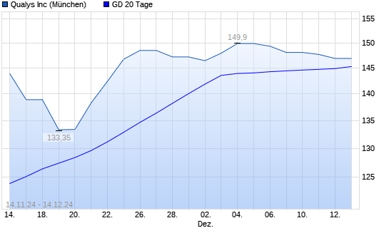 Mit dem Rücksetzer auf 140,15 EUR hat die Qualys-Aktie am 13.12.2024 die 20-Tage-Linie nach unten gekreuzt.