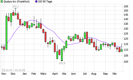 Mit dem Rücksetzer auf 110,25 EUR hat die Qualys-Aktie am 22.10.2025 die 50-Tage-Linie nach unten gekreuzt.