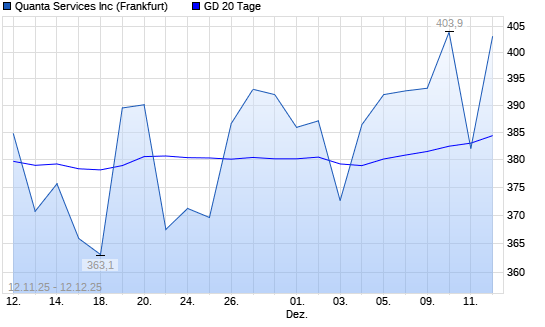 Mit dem Rücksetzer auf 382,00 EUR hat die Quanta Services-Aktie am 11.12.2025 die 20-Tage-Linie nach unten gekreuzt.
