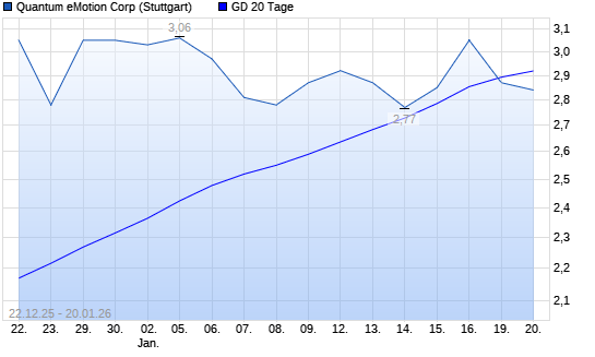 Mit dem Rücksetzer auf 2,85 EUR hat die Quantum eMotion-Aktie am 19.01.2026 die 20-Tage-Linie nach unten gekreuzt.