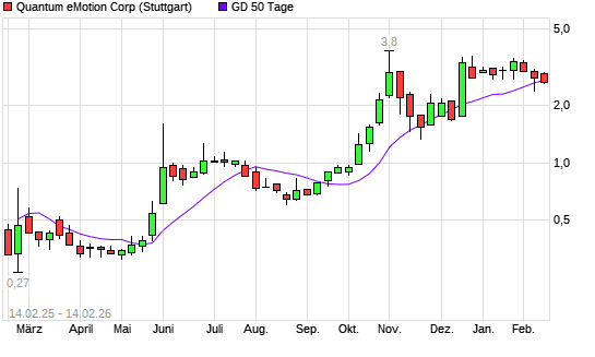 Mit dem Rücksetzer auf 2,68 EUR hat die Quantum eMotion-Aktie am 13.02.2026 die 50-Tage-Linie nach unten gekreuzt.