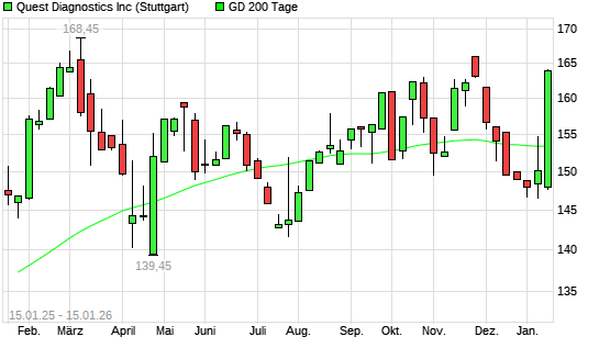 Mit dem Anstieg auf 153,70 EUR hat die Quest Diagnostics-Aktie am 14.01.2026 die 200-Tage-Linie nach oben gekreuzt.