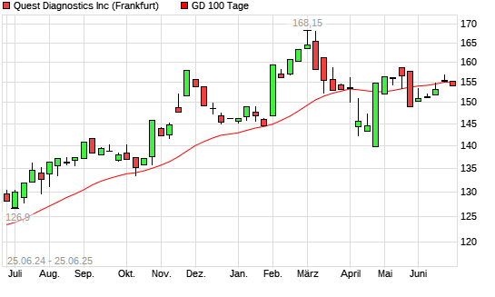 Mit dem Rücksetzer auf 154,55 EUR hat die Quest Diagnostics-Aktie am 24.06.2025 die 100-Tage-Linie nach unten gekreuzt.