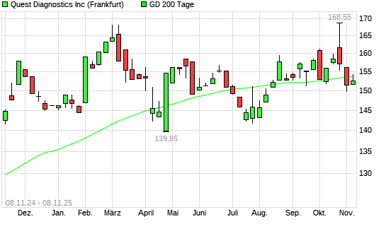 Mit dem Rücksetzer auf 152,50 EUR hat die Quest Diagnostics-Aktie am 07.11.2025 die 200-Tage-Linie nach unten gekreuzt.