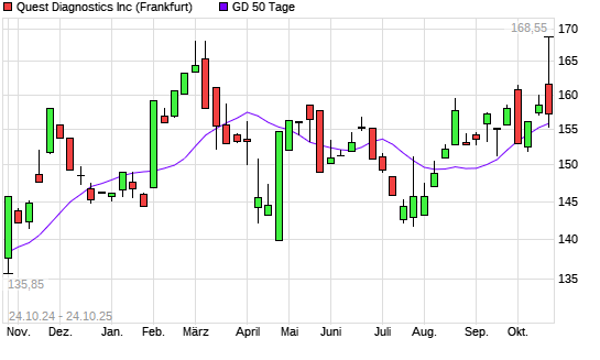Mit dem Rücksetzer auf 155,35 EUR hat die Quest Diagnostics-Aktie am 23.10.2025 die 50-Tage-Linie nach unten gekreuzt.