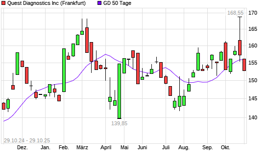Mit dem Rücksetzer auf 154,10 EUR hat die Quest Diagnostics-Aktie am 28.10.2025 die 50-Tage-Linie nach unten gekreuzt.