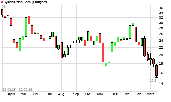 Mit dem Rücksetzer auf 15,40 EUR hat die Quidel-Aktie (ISIN US2197981051) am 11.03.2026 ein neues 5-Jahres-Tief erreicht und damit den Kurs vom 10.03.2026 eingestellt.