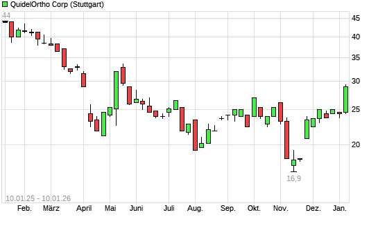 Mit dem Anstieg auf 29,00 EUR hat die Quidel-Aktie (ISIN US2197981051) am 09.01.2026 ein neues 6-Monats-Hoch erreicht und damit den Kurs vom 07.01.2026 eingestellt.