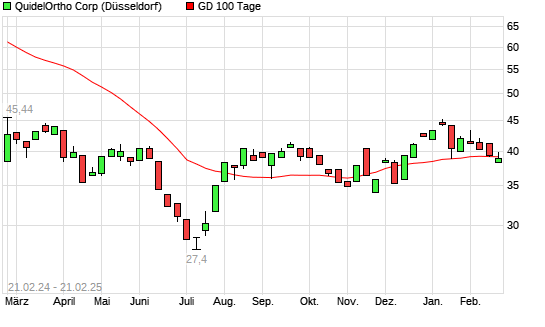 Mit dem Rücksetzer auf 38,60 EUR hat die Quidel-Aktie am 20.02.2025 die 100-Tage-Linie nach unten gekreuzt.