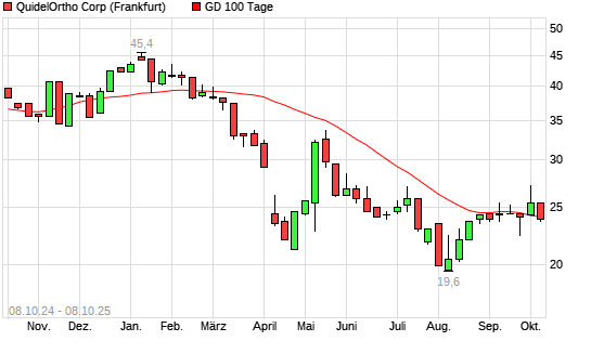 Mit dem Rücksetzer auf 23,60 EUR hat die Quidel-Aktie am 07.10.2025 die 100-Tage-Linie nach unten gekreuzt.