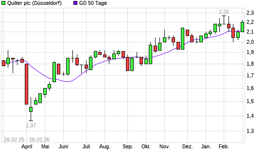 Mit dem Rücksetzer auf 2,12 EUR hat die Quilter plc-Aktie am 25.02.2026 die 50-Tage-Linie nach unten gekreuzt.