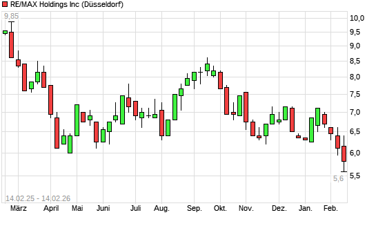 Mit dem Rücksetzer auf 5,85 EUR hat die RE/MAX Holding A-Aktie (ISIN US75524W1080) am 13.02.2026 ein neues All-Time-Low erreicht und damit den Kurs vom 12.02.2026 eingestellt.