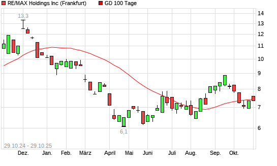 Mit dem Rücksetzer auf 7,40 EUR hat die RE/MAX Holding A-Aktie am 28.10.2025 die 100-Tage-Linie nach unten gekreuzt.
