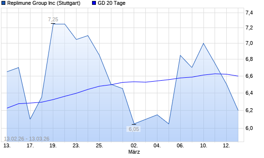Mit dem Rücksetzer auf 6,50 EUR hat die REPLIMUNE GR. INC-Aktie am 12.03.2026 die 20-Tage-Linie nach unten gekreuzt.