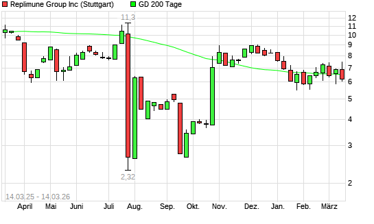 Mit dem Rücksetzer auf 6,25 EUR hat die REPLIMUNE GR. INC-Aktie am 13.03.2026 die 200-Tage-Linie nach unten gekreuzt.