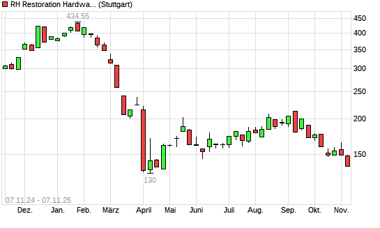 Mit dem Rücksetzer auf 136,56 EUR hat die RH-Aktie (ISIN US74967X1037) am 06.11.2025 ein neues 6-Monats-Tief erreicht und damit den Kurs vom 05.11.2025 eingestellt.