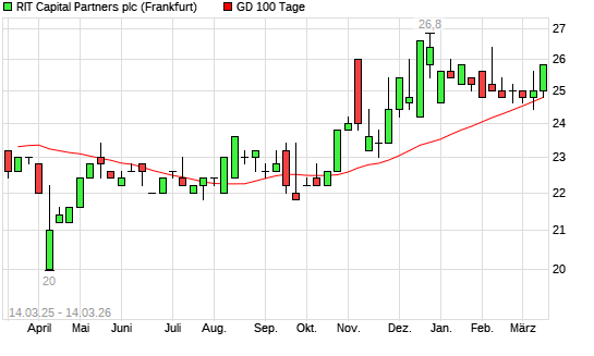 Mit dem Anstieg auf 25,80 EUR hat die RIT Capital Partners-Aktie am 13.03.2026 die 100-Tage-Linie nach oben gekreuzt.