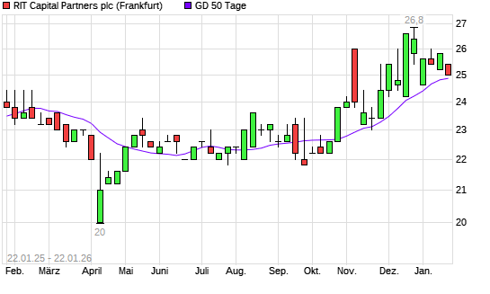 Mit dem Rücksetzer auf 25,00 EUR hat die RIT Capital Partners-Aktie am 21.01.2026 die 50-Tage-Linie nach unten gekreuzt.