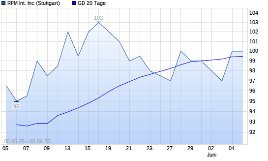 Mit dem Anstieg auf 100,00 EUR hat die RPM International-Aktie am 04.06.2025 die 20-Tage-Linie nach oben gekreuzt.