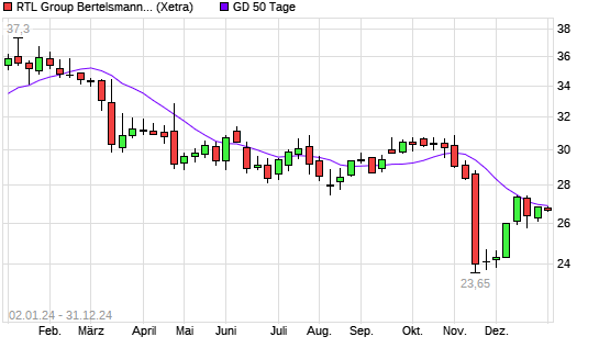 Mit dem Rücksetzer auf 26,65 EUR hat die RTL-Aktie am 30.12.2024 die 50-Tage-Linie nach unten gekreuzt.