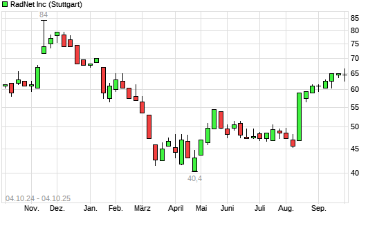 Mit dem Anstieg auf 66,50 EUR hat die RadNet-Aktie (ISIN US7504911022) am 03.10.2025 ein neues 6-Monats-Hoch erreicht und damit den Kurs vom 02.10.2025 eingestellt.