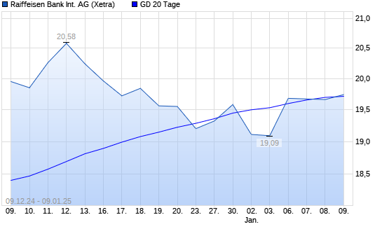 Mit dem Rücksetzer auf 19,60 EUR hat die Raiffeisen Bank-Aktie am 08.01.2025 die 20-Tage-Linie nach unten gekreuzt.