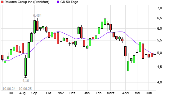 Mit dem Anstieg auf 4,94 EUR hat die Rakuten-Aktie am 09.06.2025 die 50-Tage-Linie nach oben gekreuzt.