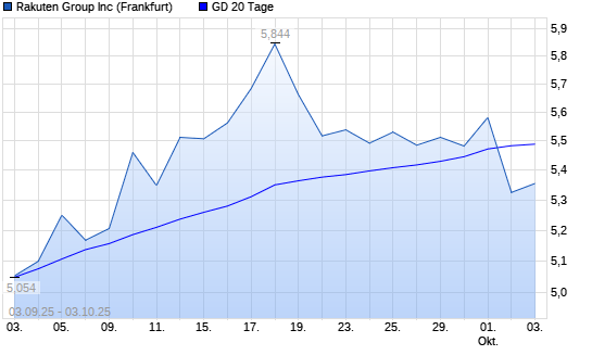 Mit dem Rücksetzer auf 5,32 EUR hat die Rakuten-Aktie am 02.10.2025 die 20-Tage-Linie nach unten gekreuzt.