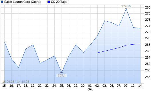 Mit dem Rücksetzer auf 265,45 EUR hat die Ralph Lauren-Aktie am 13.10.2025 die 20-Tage-Linie nach unten gekreuzt.