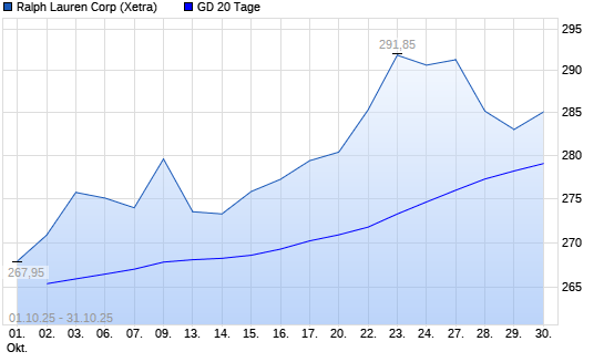 Mit dem Rücksetzer auf 278,15 EUR hat die Ralph Lauren-Aktie am 30.10.2025 die 20-Tage-Linie nach unten gekreuzt.