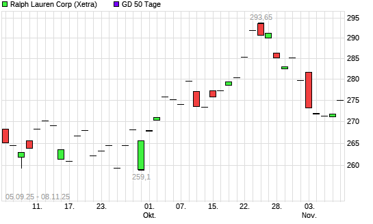 Mit dem Rücksetzer auf 267,65 EUR hat die Ralph Lauren-Aktie am 07.11.2025 die 50-Tage-Linie nach unten gekreuzt.