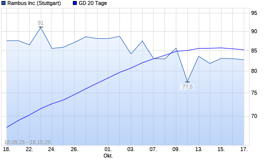 Mit dem Rücksetzer auf 81,70 EUR hat die Rambus-Aktie am 17.10.2025 die 20-Tage-Linie nach unten gekreuzt.