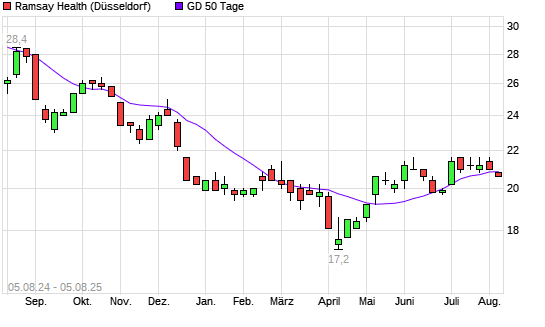Mit dem Rücksetzer auf 20,80 EUR hat die Ramsay Health-Aktie am 04.08.2025 die 50-Tage-Linie nach unten gekreuzt.